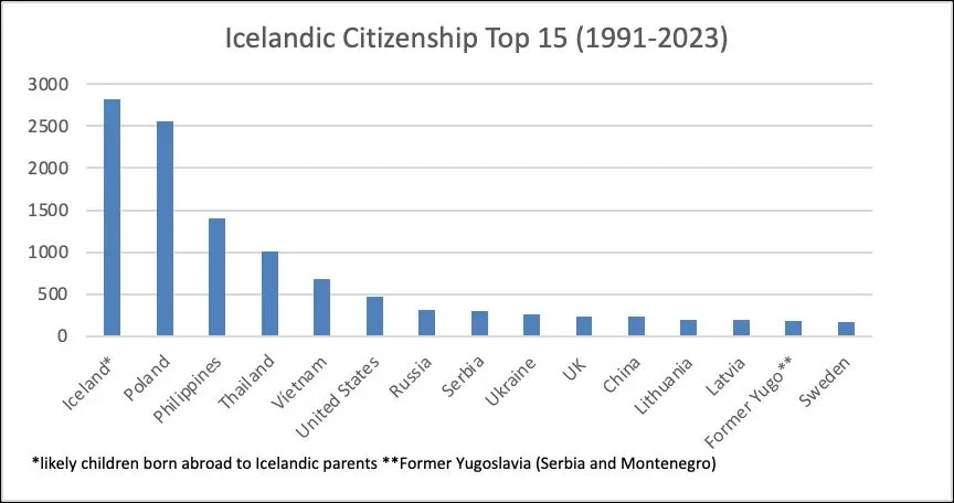 That year alone (Statistics Iceland, 2024), approximately 8,160 individuals from Eastern Europe migrated to Iceland. This includes Poles (3,177), Latvians (597), Lithuanians (981), and Ukrainians (1,230), as well as Romanians (1,082), Czechs (469), Slovaks (159), Moldovans (85), Hungarians (179), Croatians (131), and Bulgarians (70), clearly constituting the largest regional bloc.